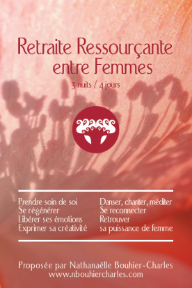 (...) ces 4 jours portent bien leur nom car cela a vraiment été ressourçant pour moi, 4 jours d'écoute, de bienveillance, de gentillesse et d'amour... tout ce dont je manquais, ce que je ne m'accordais pas à moi-même, et ce dont je ne savais même pas que c'était possible avec des femmes que je ne connaissais pas, de tous âges et de tous horizons réunies pour prendre soin d'elles-mêmes et des autres... et en aussi peu de temps... mais c'est la magie de Natha... et ça je n'en doutais pas avant de venir !