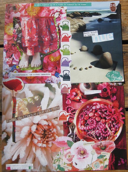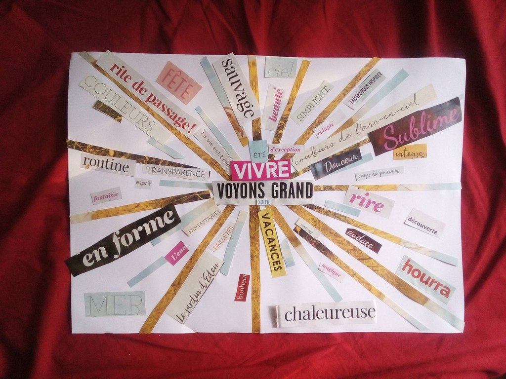 (…) mon Vision Board a pris place naturellement en face de mon lit et je me réveille chaque matin avec cette vision de tout ce qui motive mon envie...c'est un bonheur de l'avoir réalisé et j'en suis très fière. Les méditations et l'EFT sont rentrés dans ma routine. Depuis notre retraite à La Maurelle j'ai sorti une Belle ouverture de créativité que ce soit de réalisations créatives ou dans mes activités professionnelles. Des projets sont en cours et de belles rencontres ont eu lieu, je laisse le temps à tout cela de germer. Cette rencontre à la Maurelle a été magique pour moi et un grand merci pour ce que tu es. J'espère à très vite.